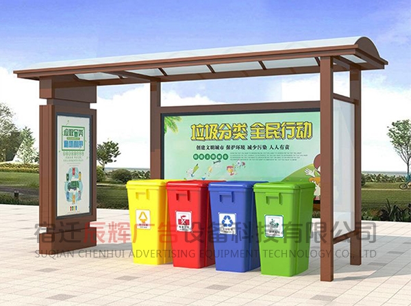 垃圾分類亭一般放在小區(qū)或者公共的地方集合垃圾之用。同樣的材料也可制成配電房、報亭、崗亭、景區(qū)休息室等。宿遷辰輝廣告設備科技有限公司,我們的產品豐富多元化,應用場景廣泛,也可以根據(jù)客戶的需要來圖定做。